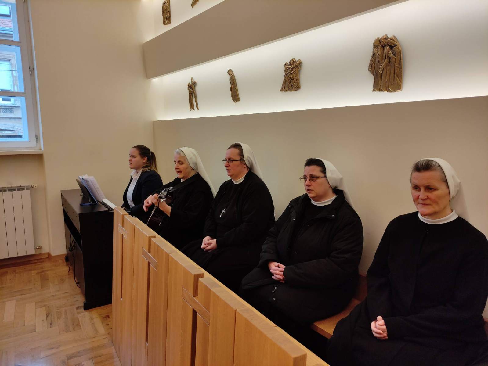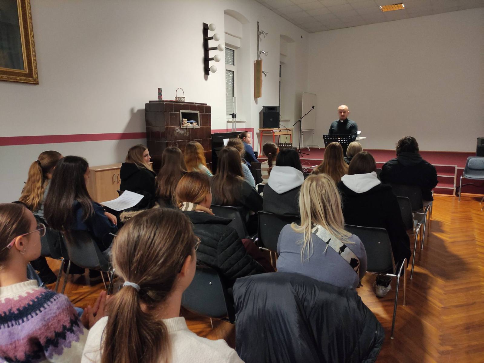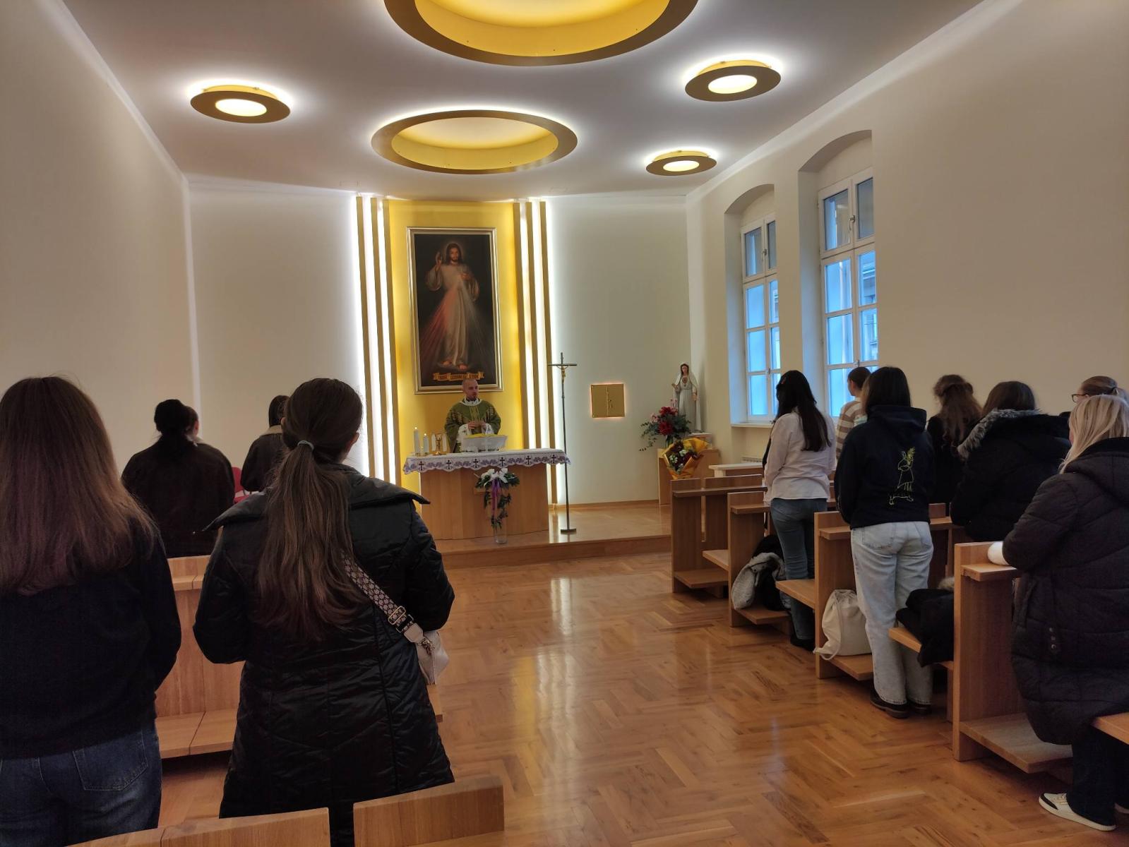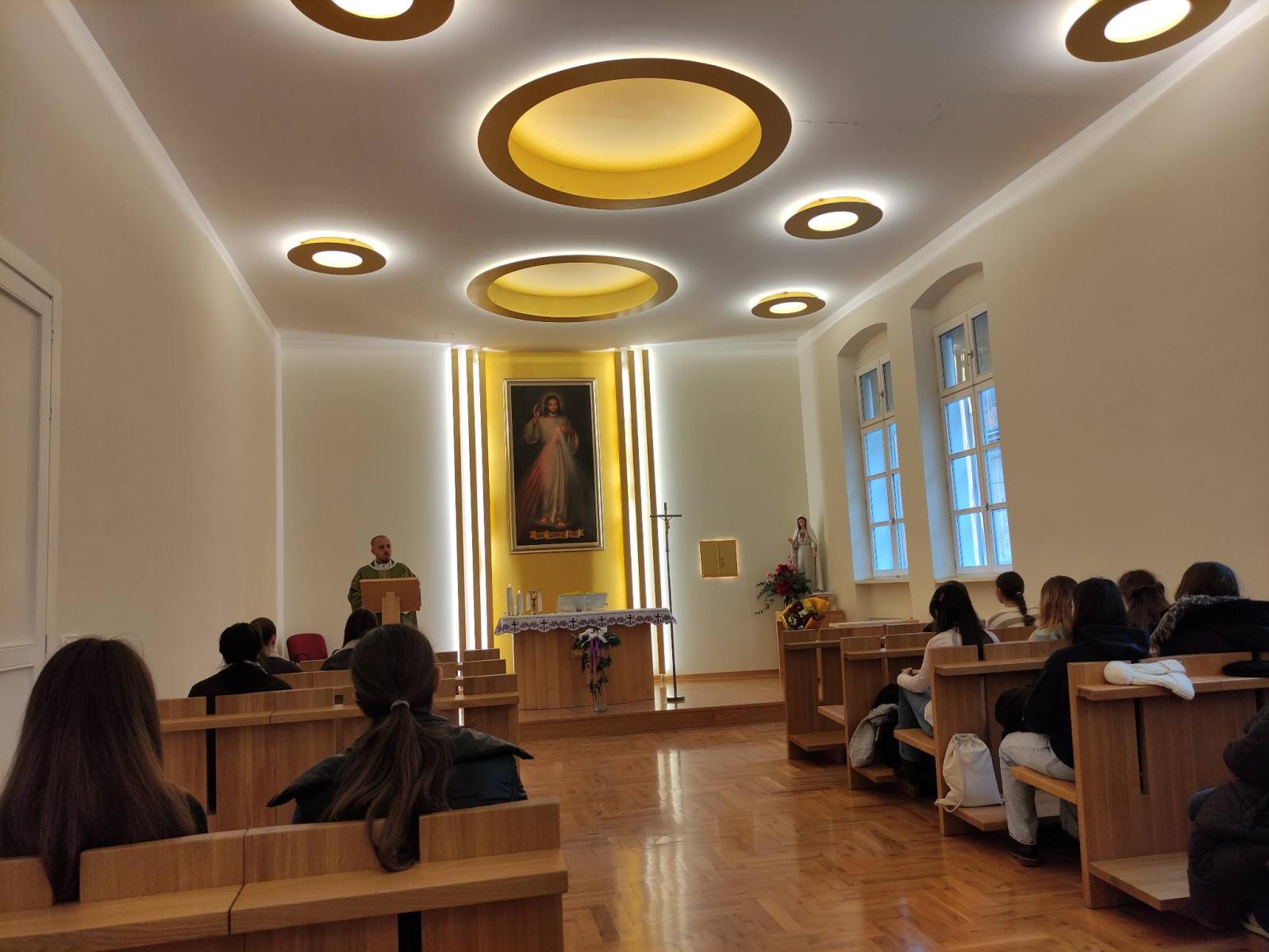 U subotu uoči prve adventske nedjelje dvadesetak učenica 3. i 4. razreda sudjelovalo je na duhovnoj obnovi koju škola organizira svake godine. Ove godine svojim poticajnim riječima učenicama su se obratili školski duhovnik vlč. Matko Filipović i bivša žogica s. Tea Juratović. Vlč. Matko je u svom izlaganju predstavio i protumačio tri vrste ljubavi: eros, filia i agape te posvjedočio o svom svećeničkom putu i koji smisao za njega ima njegov poziv. U drugom izlaganju s. Tea Juratović predstavila je Družbu sestara milosrdnica, njezinu povijest koja ove godine broji 180 godina na tlu Zagreba, tj. Hrvatske i djelatnosti kojima sestre u današnje vrijeme nastoje pružati ljubav svima potrebnima u njihovim duhovnim i materijalnim potrebama u duhu sv. Vinka Paulskoga, a ujedno je posvjedočila i o svom putu od učenice Ženske opće gimnazije do sestre milosrdnice. Nakon kratke pauze bio je izložen Presveti Sakramenat na klanjanje te su učenice imale priliku za sv. ispovijed nakon koje je uslijedilo vrhunac dana, sv. misa. Nakon zajedničke fotografije za uspomenu i dugo sjećanje te još kratko druženje, ispunjena srca razišli smo se svojim kućama do neke sljedeće slične prigode. Hvala vlč. Matku i s. Tei na otvorenosti i lijepo duhovno osmišljenom danu. ![]()