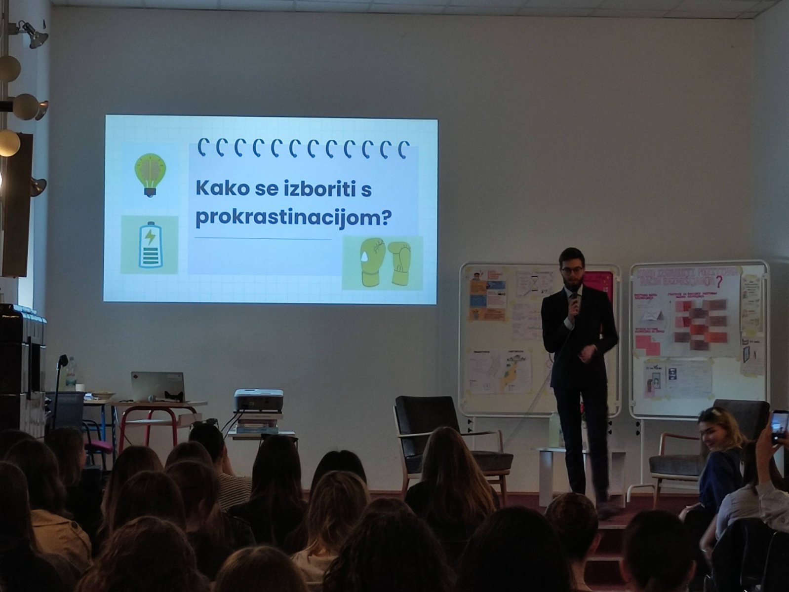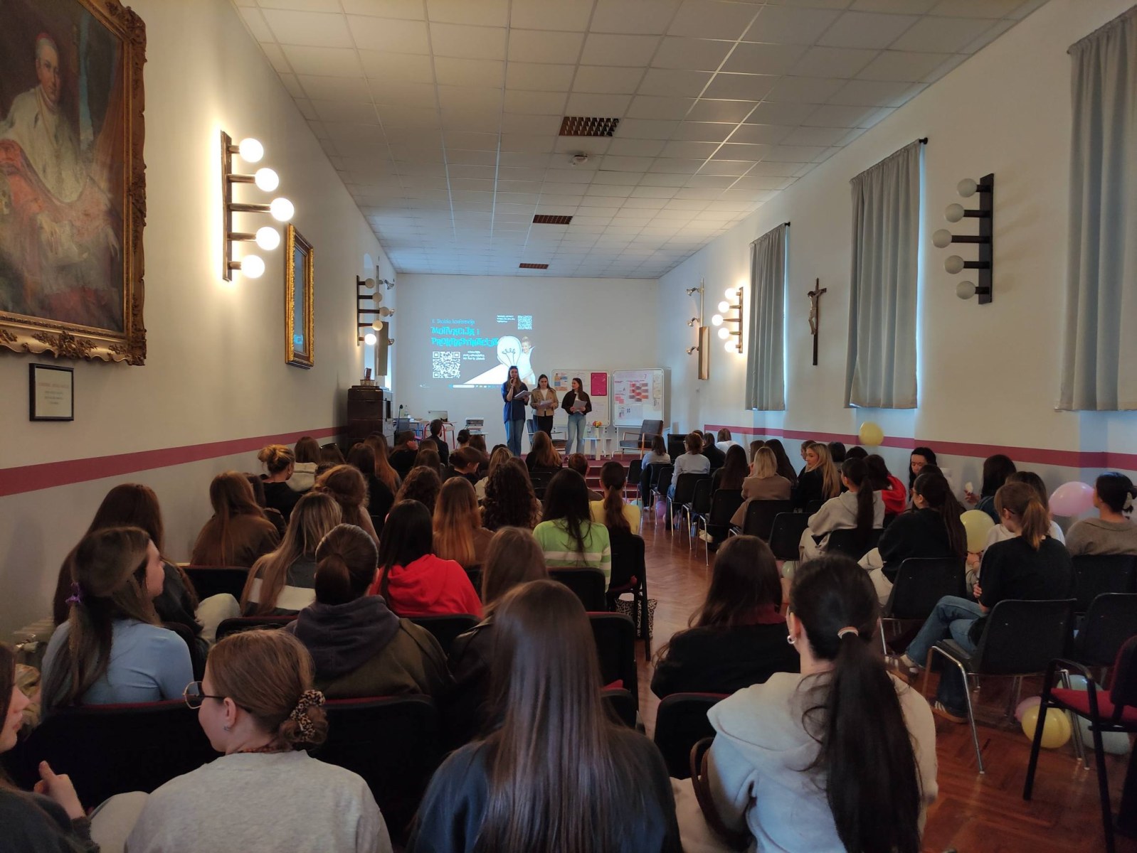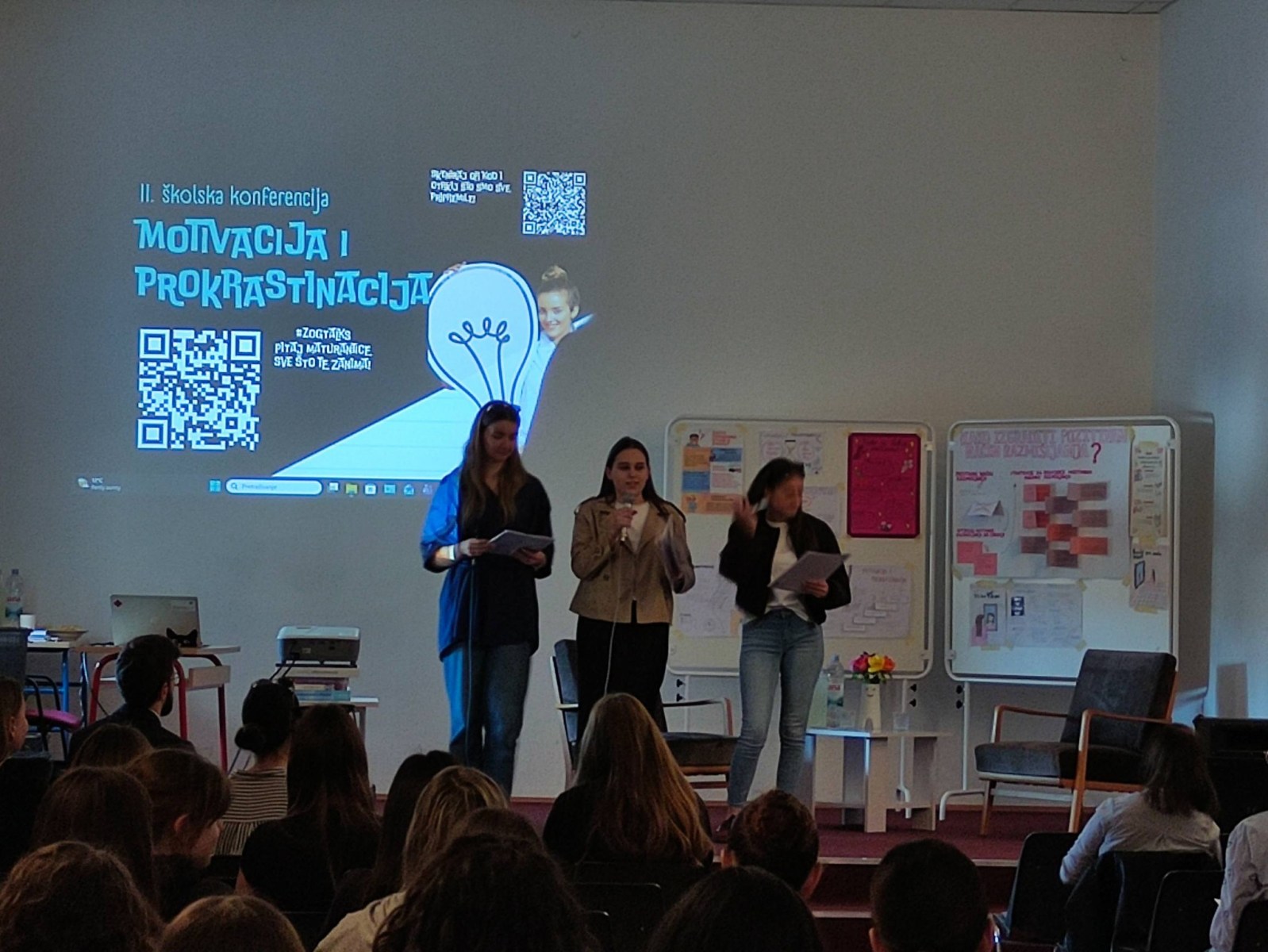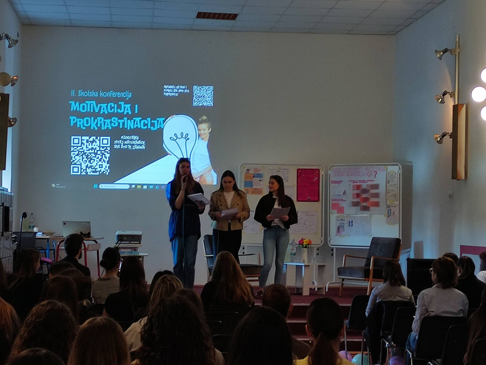 U petak, 13. ožujka 2026. u našoj školi održana je II. školska konferencija na temu motivacije i prokrastinacije. Organizatorica konferencije je školska psihologinja prof. Jelena Babuder. Naše su učenice pripremile zanimljiva izlaganja, a posebno zahvaljujemo na sudjelovanju našim gostima, Tinu Rajiču, studentu psihologije na FFZG, našoj bivšoj učenici Kristini Likarić, studentici sociologije na FFZG, Karlu Čondiću, maturantu NKG-a, Ivani Belamarić iz Centra Sirius i Janu Vojvodiću, dr.med., specijalizantu dječje i adolescentne psihijatrije. Kao i uvijek, za okrjepu su se pobrinule članice fakultativne iz domaćinstva pod vodstvom prof. Jasminke Glibanski.